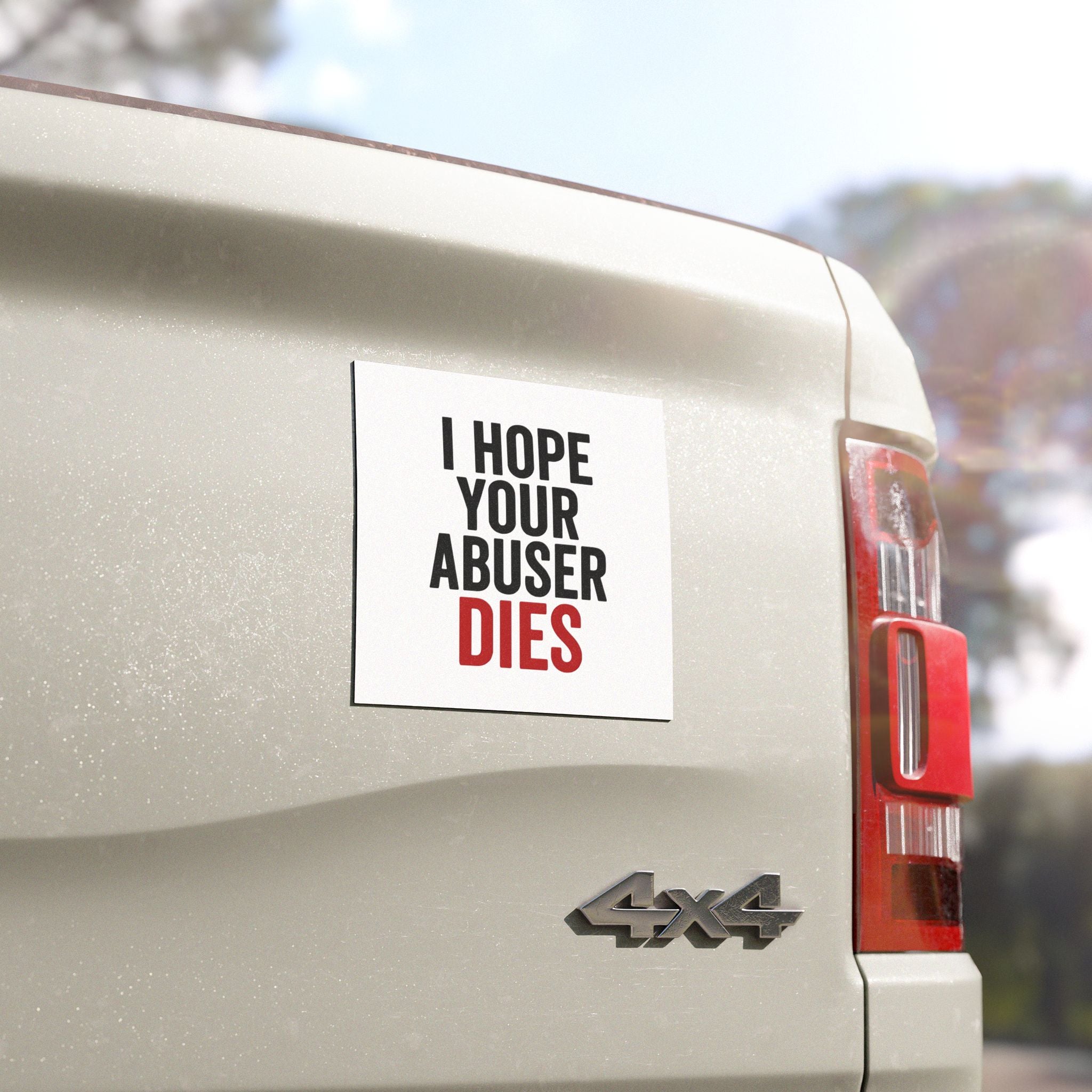 "I hope your abuser dies" Car Magnet - Empowering Message, Creative Gift for Supporters, Strong Vibes for Road Warriors